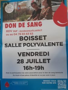 Don du sang, le vendredi 28 juillet à partir de 16h00