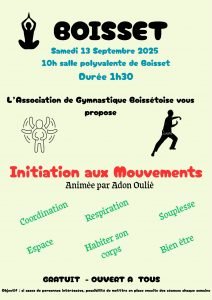 L’Association de Gym Boissétoise propose le Samedi 13 Septembre à la salle polyvalente, une séance gratuite d“Initiation aux Mouvements” animée par Adon OULIE. De quoi s’agit-il?