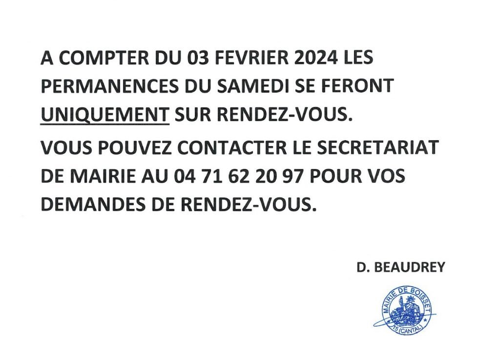 A partir du 3 février, les permanences des élus se feront sur rendez-vous.
