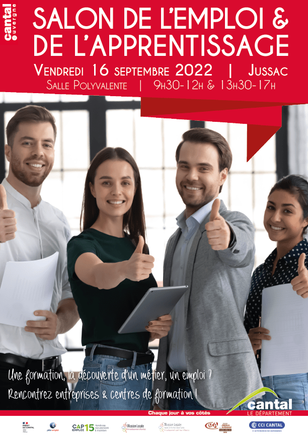 12 septembre 2022 - Sur Emploi Par webmaster 0 Salon de l’emploi et de l’apprentissage Venez découvrir les entreprises et les centres de formation à Jussac le vendredi 16 septembre. Précédent Gym à Boisset ! Suivant La marche contre le cancer